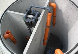 E’ composto da un’unica vasca di cemento armato senza giunti nella quale avvengono le tre funzioni di separazione fanghi, separazione oli e biofiltrazione.